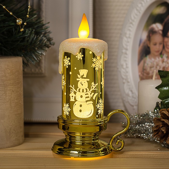 Фигура световая "Свеча снеговик", 15х7х9 см, от бат. 3хLR44, пламя моргает, Т/БЕЛЫЙ